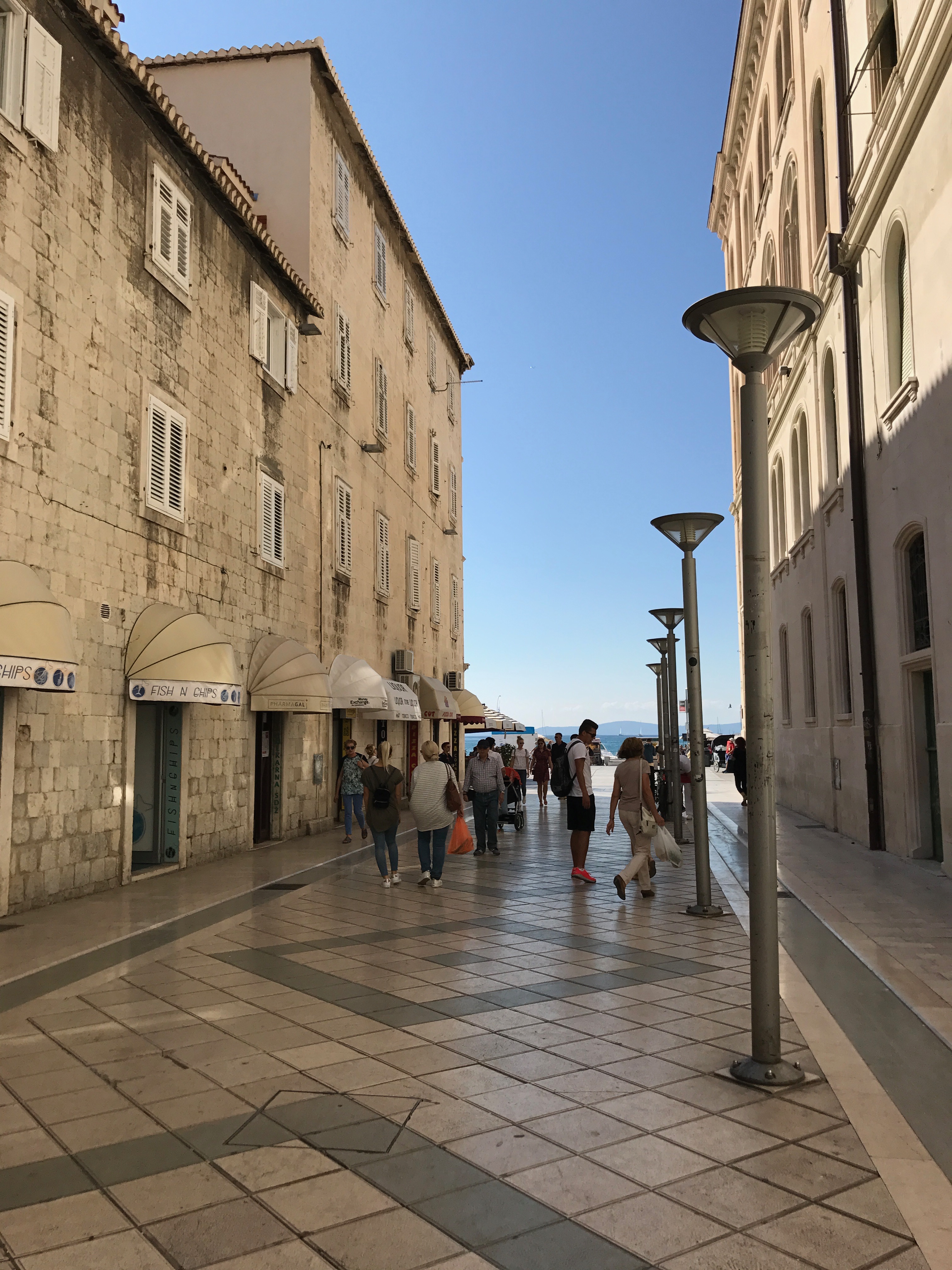 We arrived in Split, Croatia on Friday morning, September 29th, and we immediately went to get breakfast at this cute little diner that had agreed to host breakfast for us all weekend. It was the first time I had been offered eggs for breakfast since I had been in Europe. Normally breakfast consists of pastries, deli meats and lots of bread, which is not necessarily food I want to fill my body with as soon as I wake up so I was happy to see some vegetables and eggs. Afterwards, we all made our way to our apartments. I loved the sleeping arrangements here because there were 3-4 people assigned to each apartment rather than 6 people assigned to one hostel room. It made the experience more homey and the apartments were very close to the downtown area of Split. We only had about an hour at our apartment before we needed to meet up for a city tour so we washed up and rested quickly then made our way downtown to the meeting point. Honestly, the tour was pretty boring and I just kept thinking about laying on the beach the whole time so when it was finally done I couldn’t wait to make our way to the water.